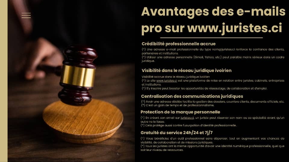 Demandez votre e-mail pro gratuite à info@juristes.ci - Témoignages -